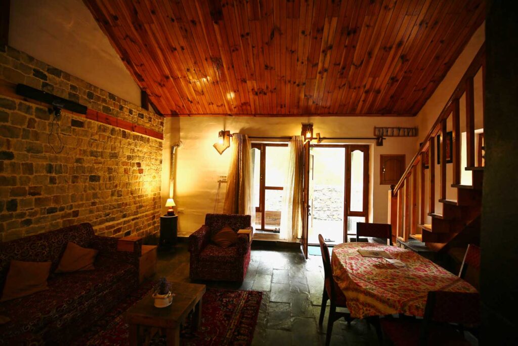 The cottages are spacious, dwelled with modern art and cater to your comfort stay. The view from the valley is whimsical and leaves you with goosebumps as you breathe the first morning fresh air. To top the desirability of this place, they serve you with their awesome food made and served with absolute love. lf you are at Tirthan, there’s no other place to be.